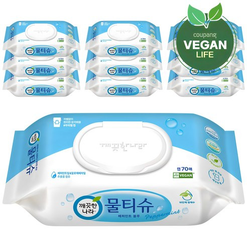 깨끗한나라 페퍼민트 물티슈 캡형, 45g, 70매입, 10개 - 물티슈 | 쿠팡