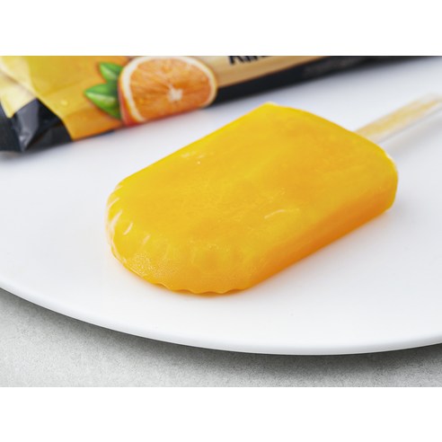 아이스크림을 꺼내봤을 때 가장 먼저 눈에 띈 것은 그 화사한 포장이었어요. 밝고 상큼한 오렌지색이 마치 여름을 부르는 듯 했어요! 포장지에서부터 감귤의 신선한 향기가 나는 것 같았어요. 한 입 베어물기 전에 기대감이 정말 컸답니다. 패키지 자체도 가벼워서 보관하기에도 좋았어요.