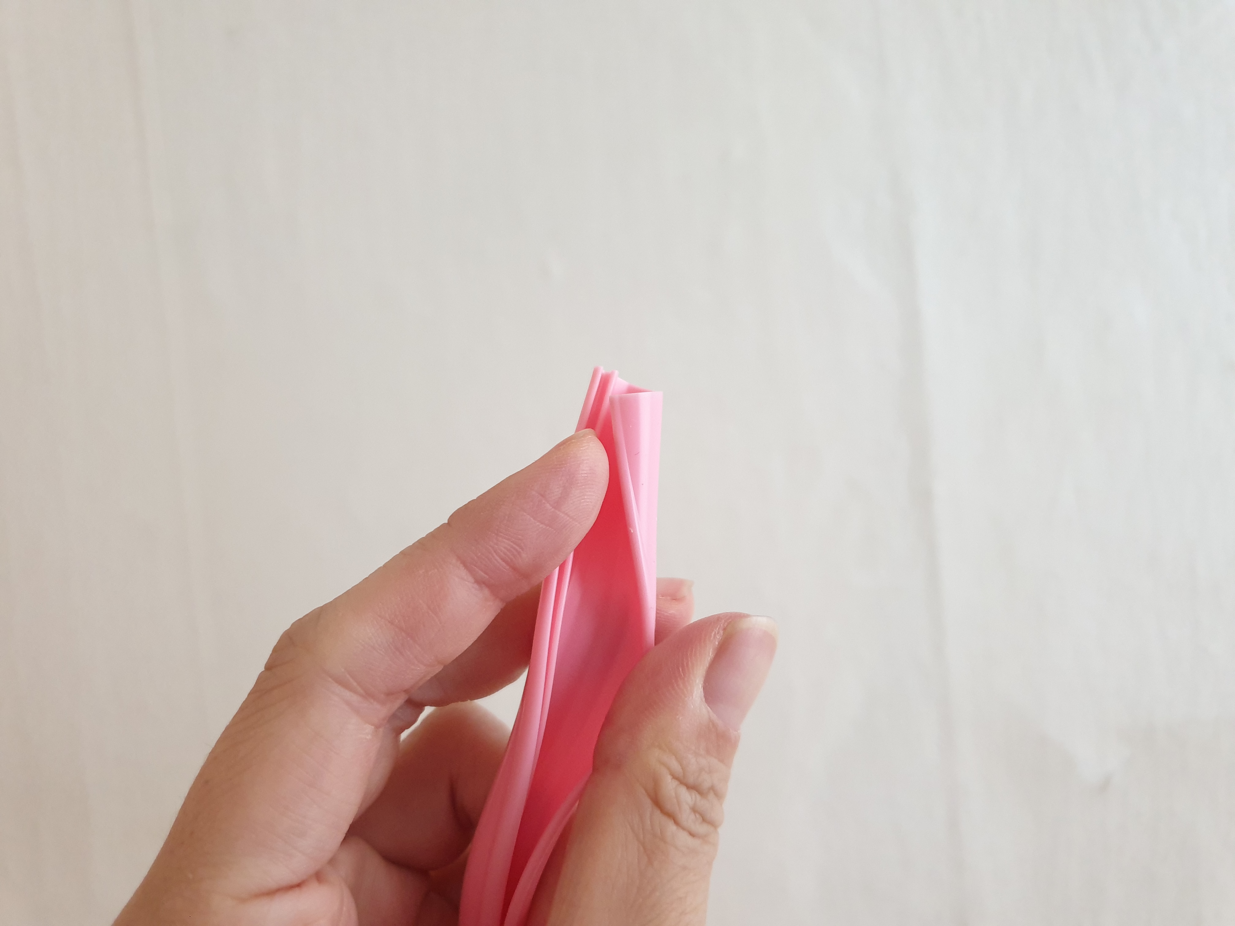 빨대를 다시 쓸 때는 이렇게 홈에 끼워서 빨대모양을 만들면 됩니다.